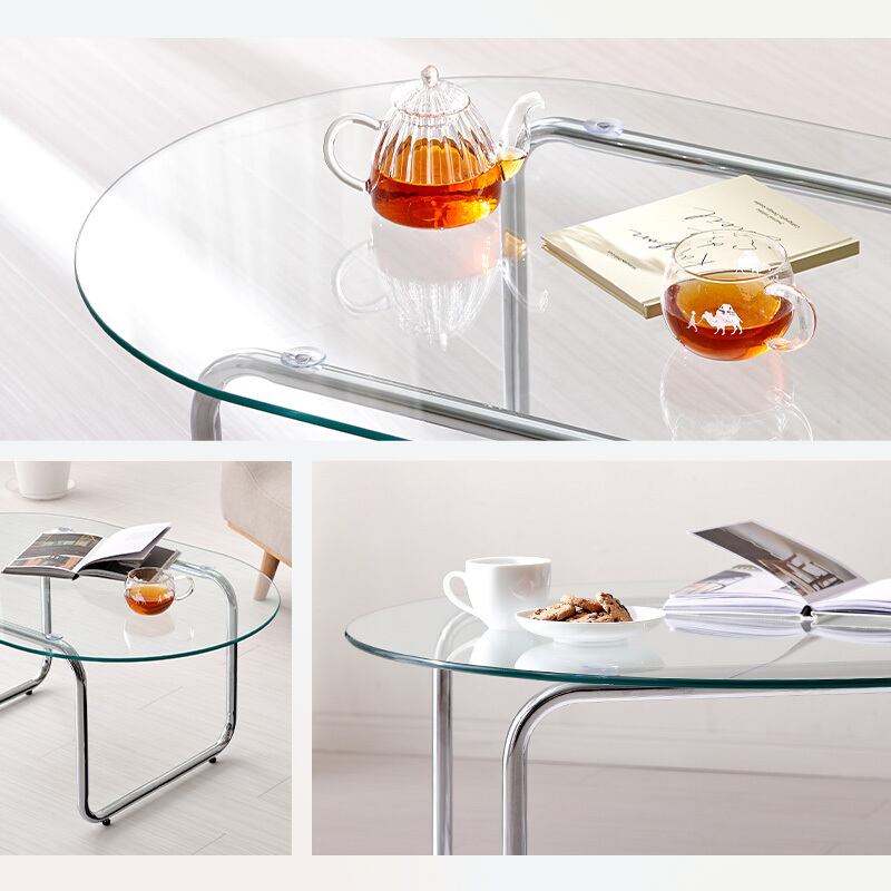 ガラス天板×シルバーレッグがスタイリッシュなセンターテーブル。