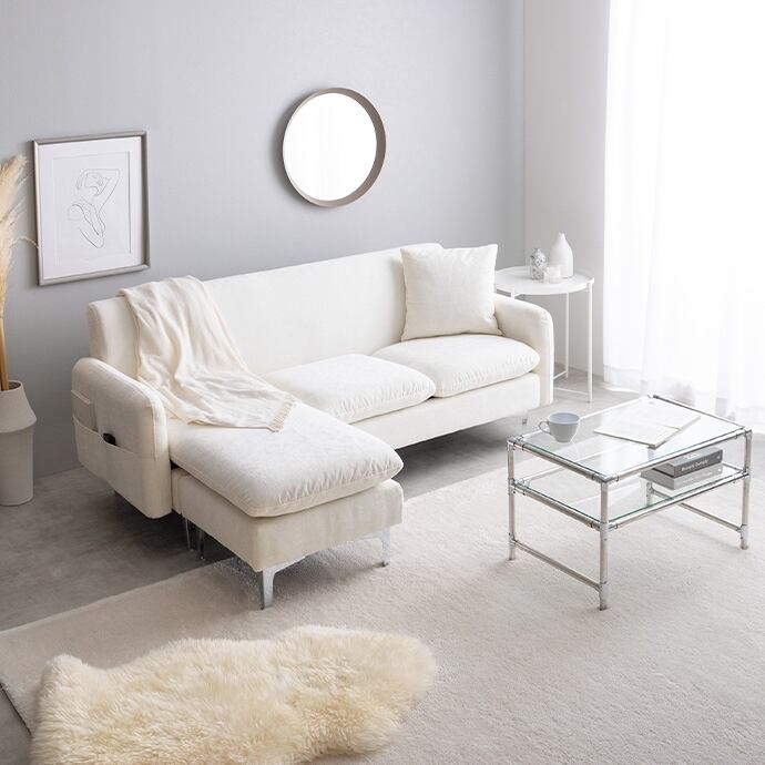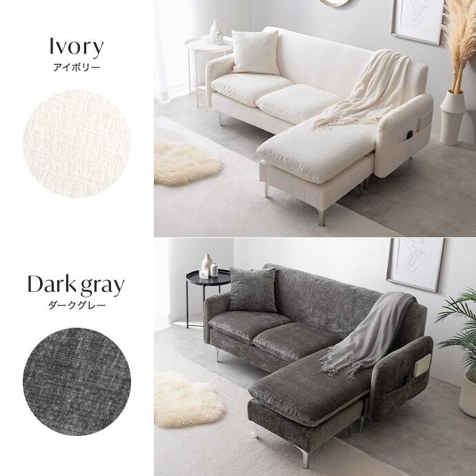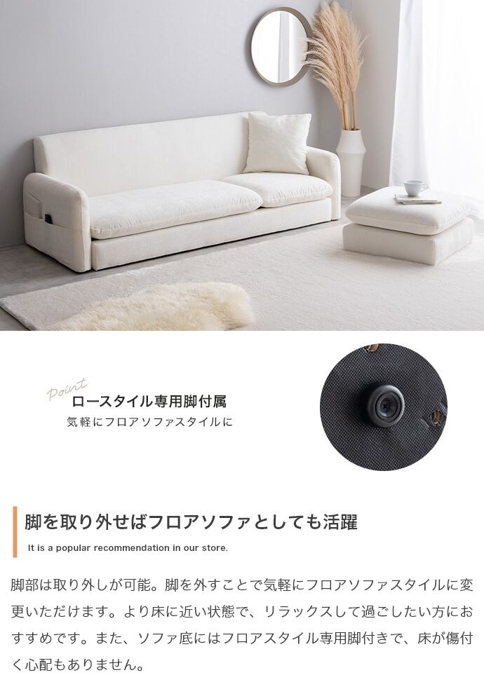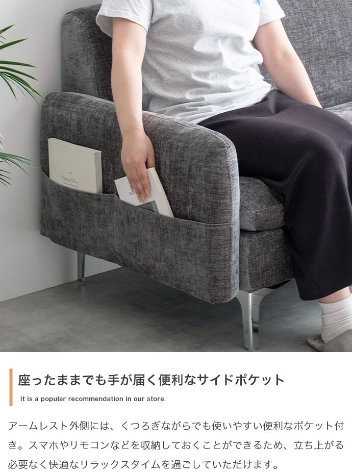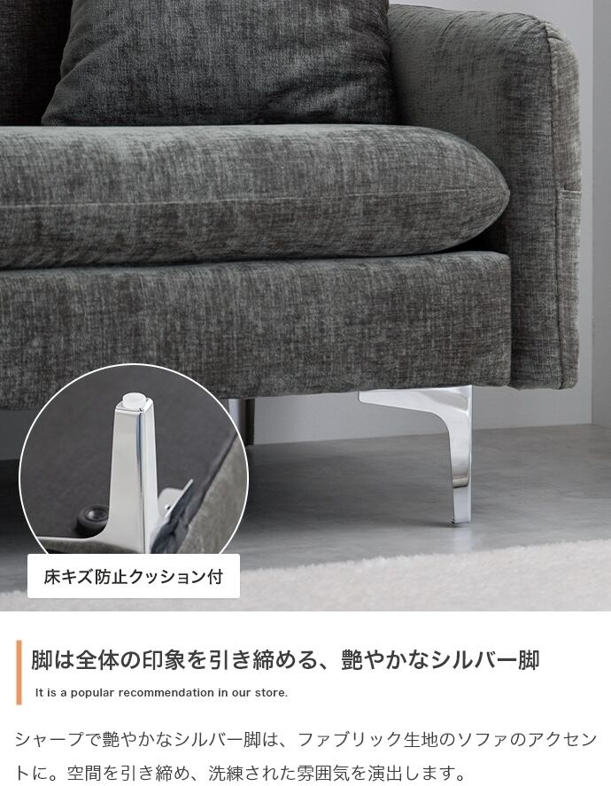 海外インテリアのような洗練されたデザインが、空間に上質な雰囲気をもたらす3人掛けカウチソファ。
