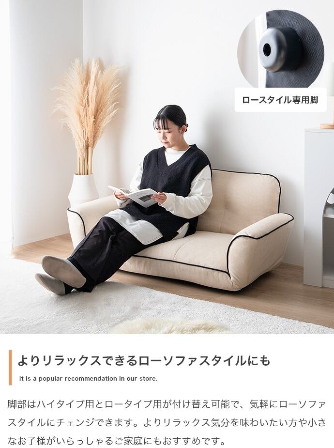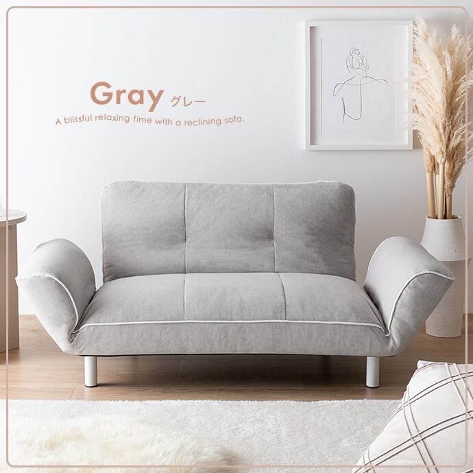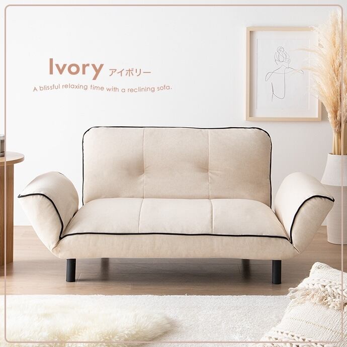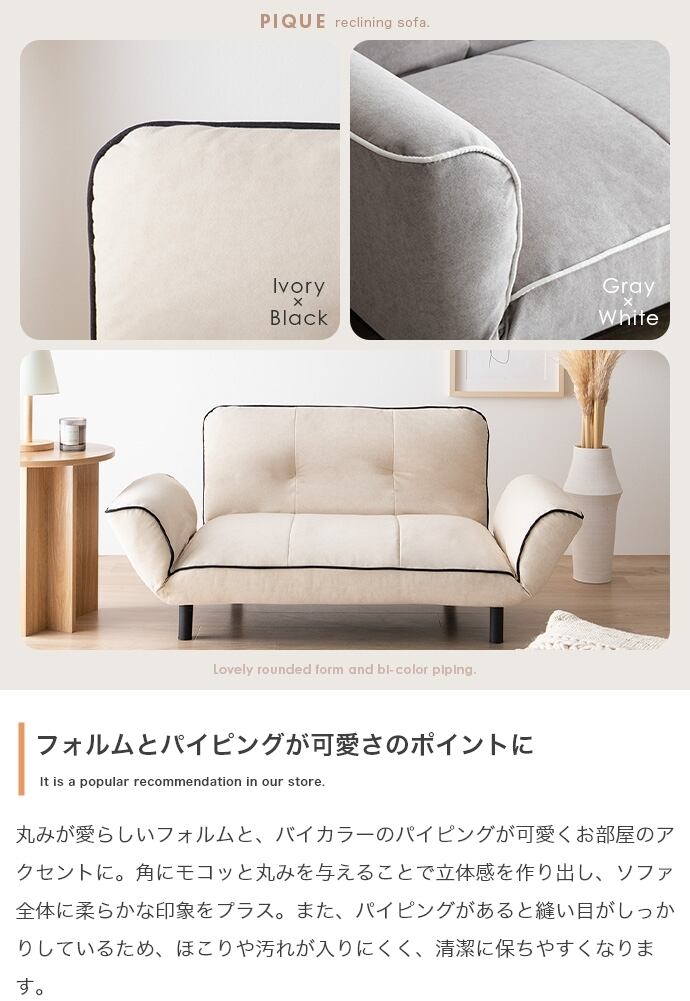 ころんとしたフォルムとパイピング加工が可愛いリクライニングソファ。