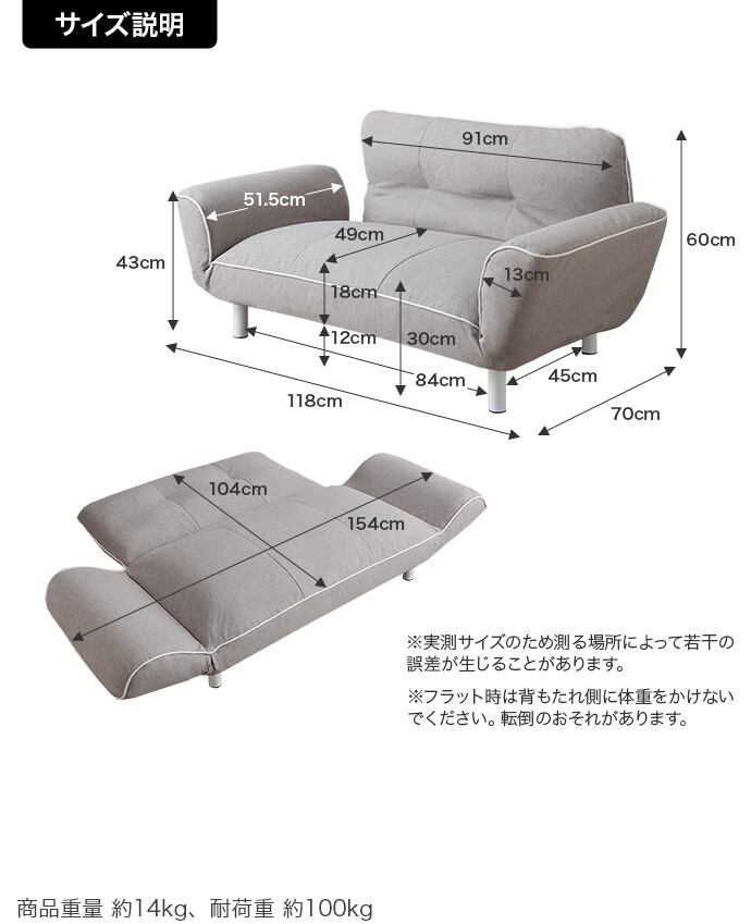 幅118cm×奥行70cm×高さ60cm(座面高:30cm)