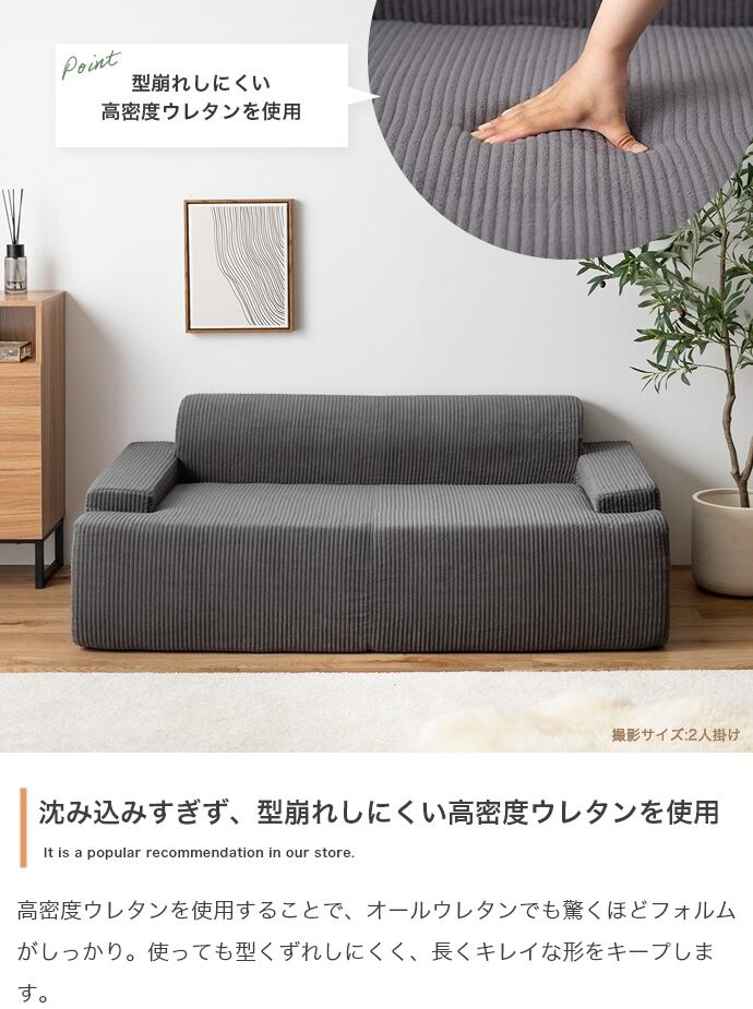 高密度ウレタンをたっぷり使用し、広めの座面としっかりした弾力で、ゆったりくつろげる座り心地を実現しました。