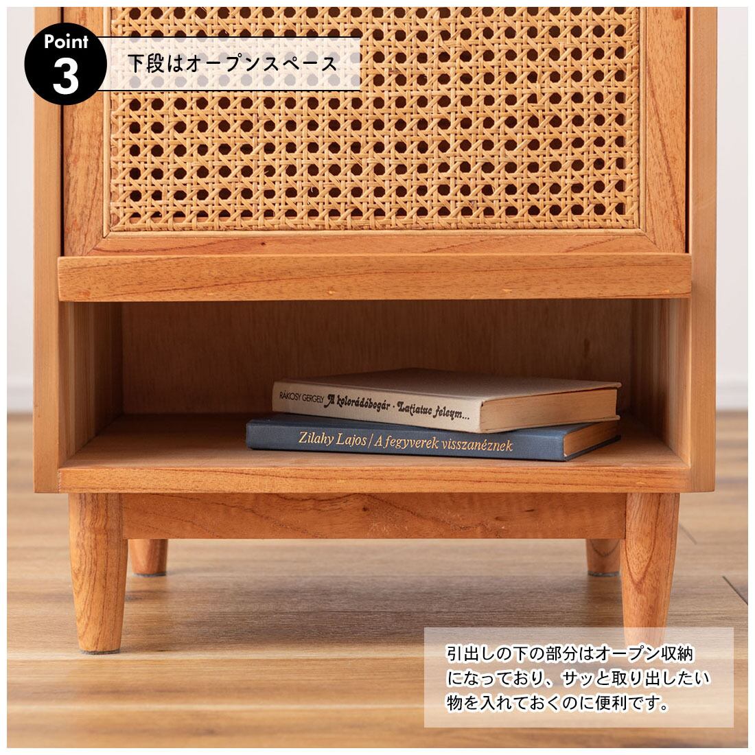 本体はぬくもり感じる天然木を、引き出し部分には天然ラタンを使用し、天然素材にこだわったテーブルです。