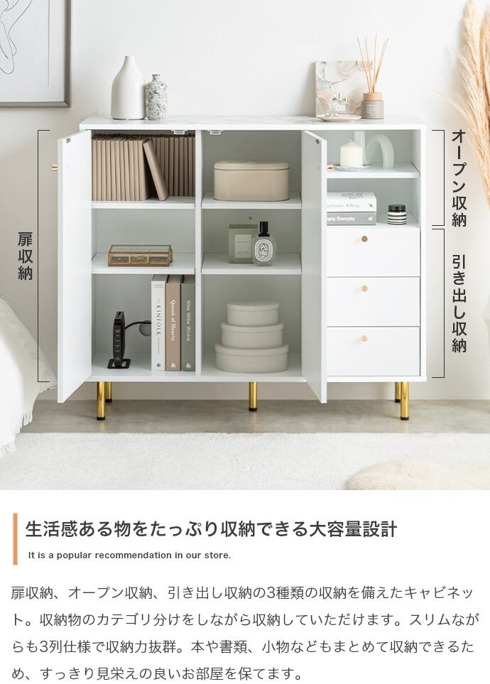 大理石柄 キャビネット 幅100cm