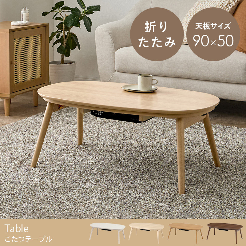 折りたたみ 楕円 こたつ+ふわもこ掛け布団 2点セット