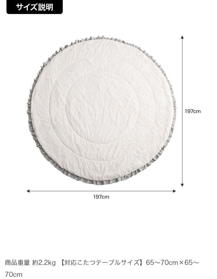 フリル付き リバーシブル ファー こたつ布団 円形:197cm