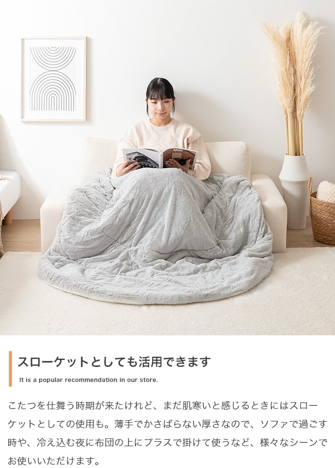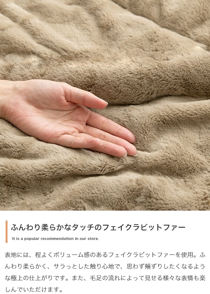ふんわり肌触りのいい生地を使用した大人ニュアンスカラーのリバーシブルファーこたつ布団。