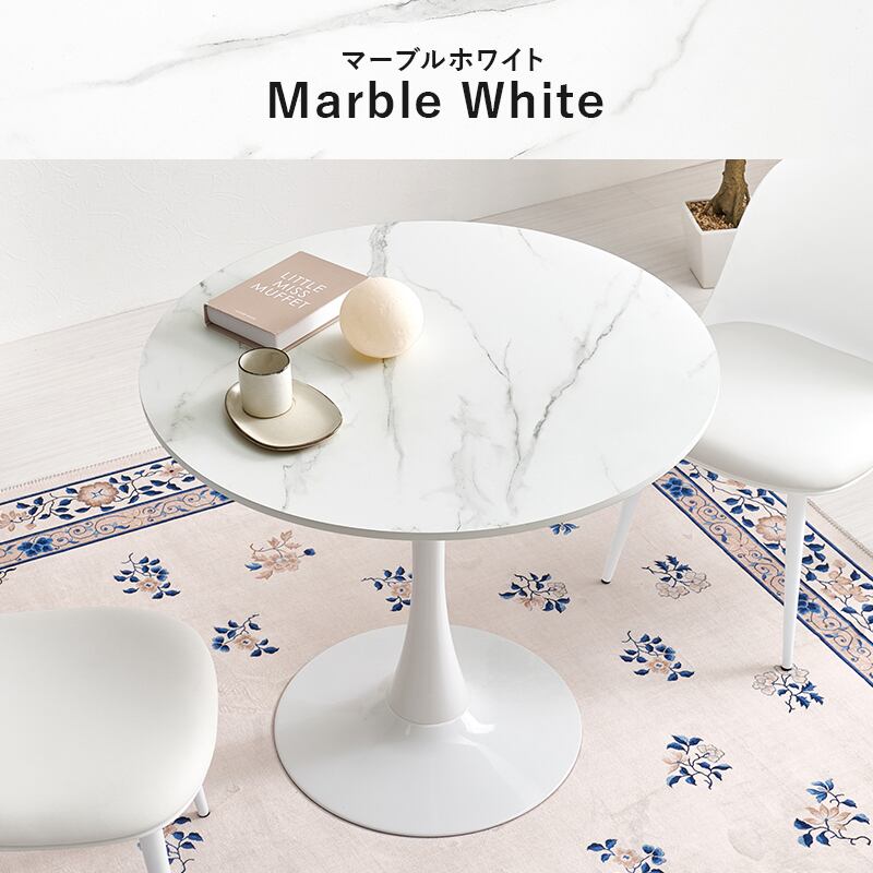 ホワイトインテリアの主役にピッタリな円形テーブル。