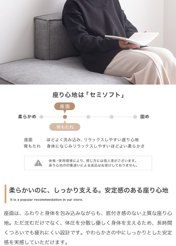 さらに、広々座面とふかふかな座り心地で、のびのびとした快適さを実現。