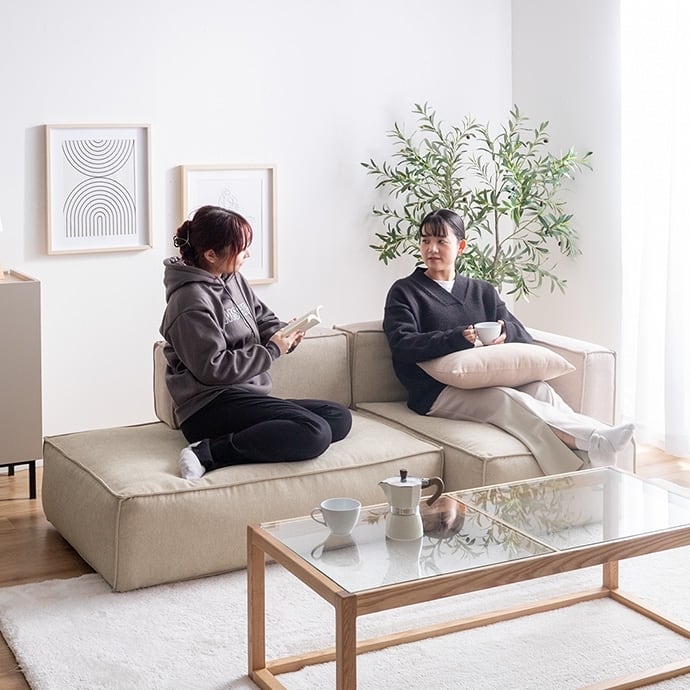 足を伸ばしてゆったりくつろげるローソファー。