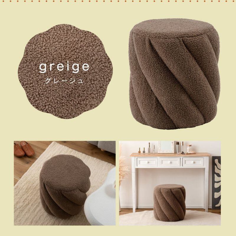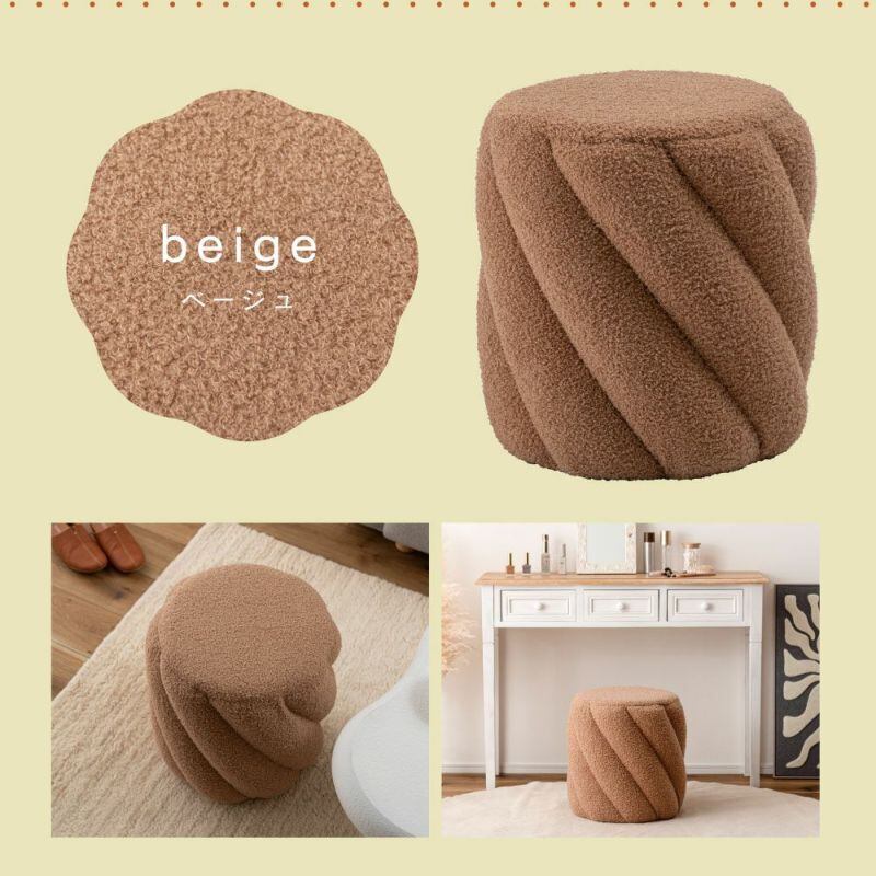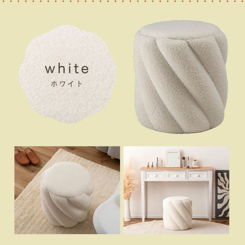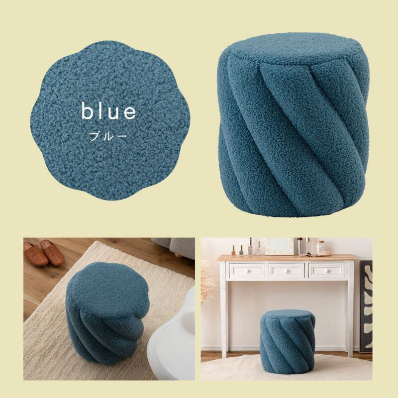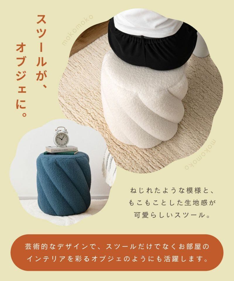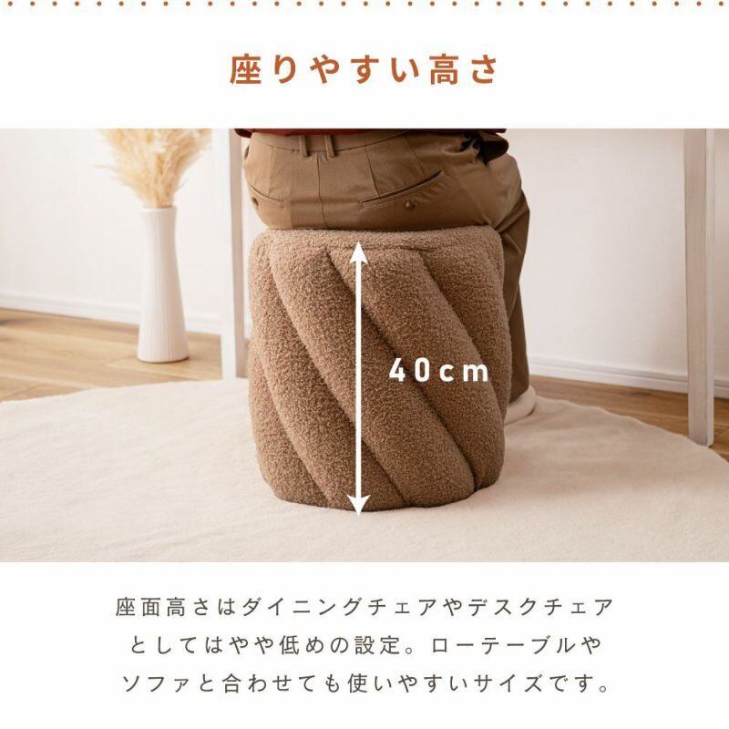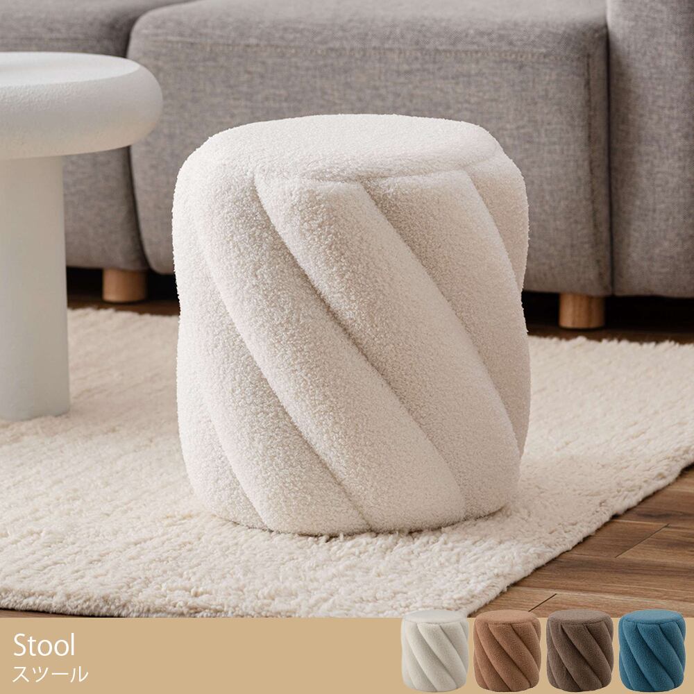 ねじれたような模様と、もこもことした生地感が可愛らしいスツール