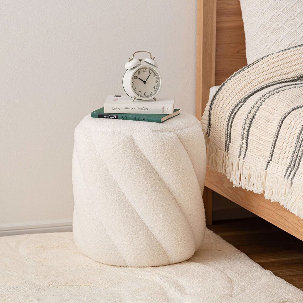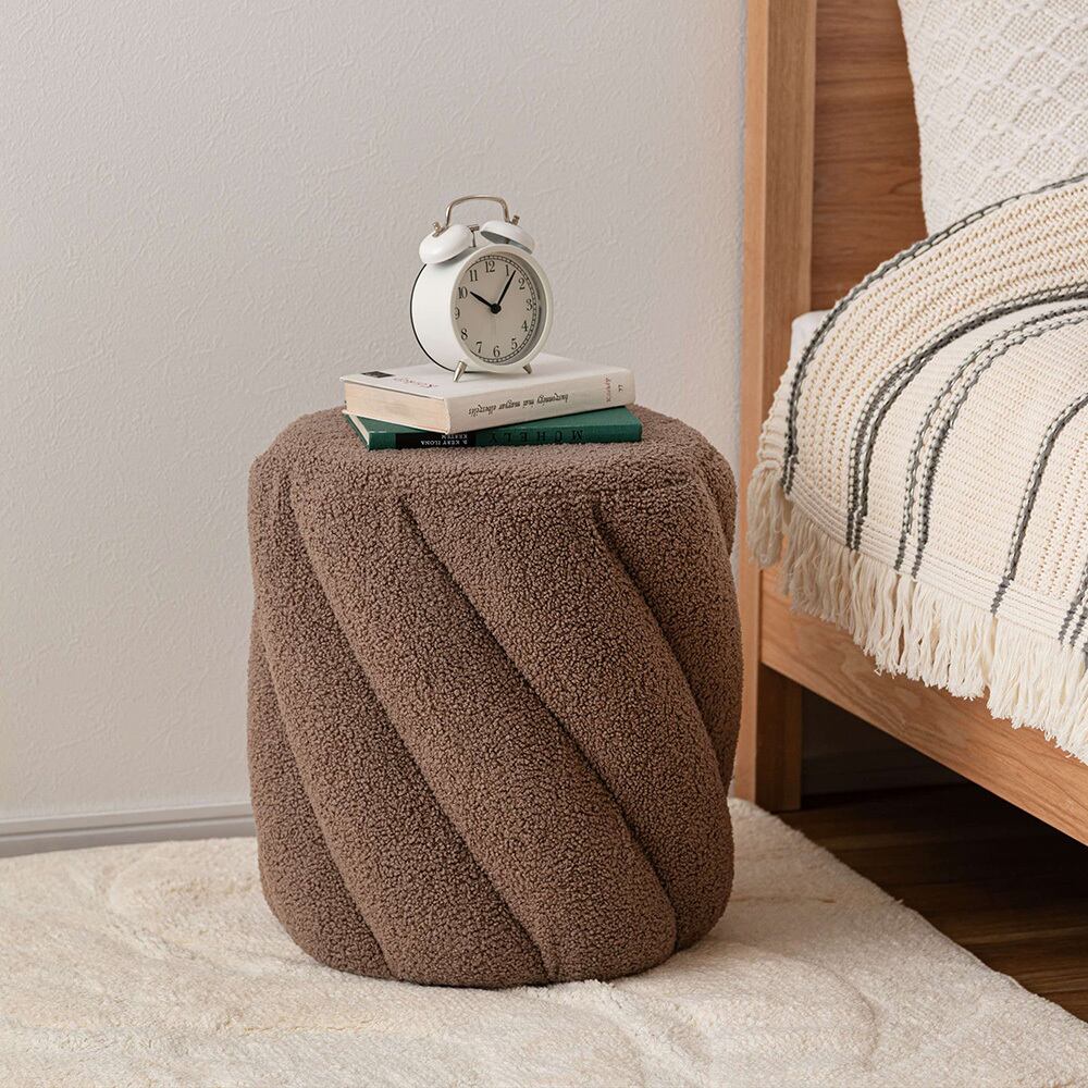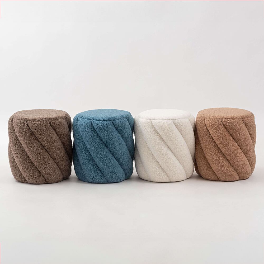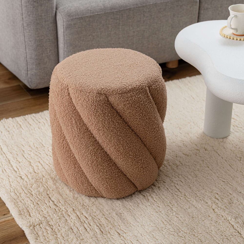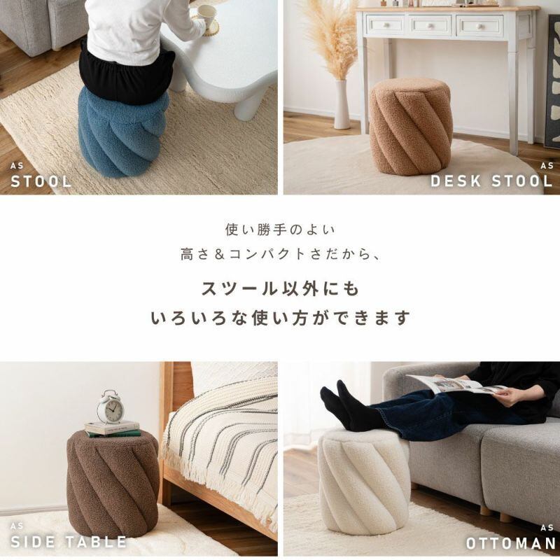 ねじれたような模様と、もこもことした生地感が可愛らしいスツール