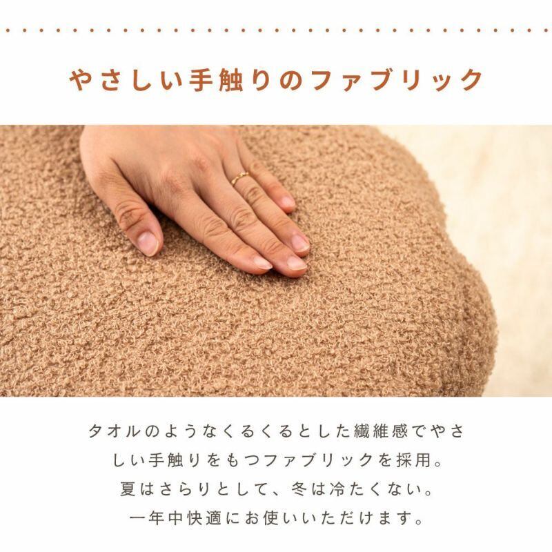 タオルのようなくるくるとした繊維感でやさしい手触りをもつファブリックを採用。