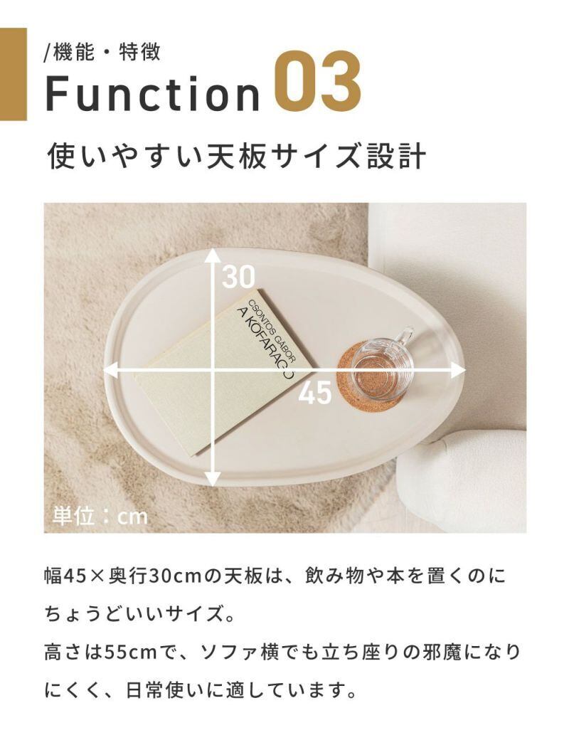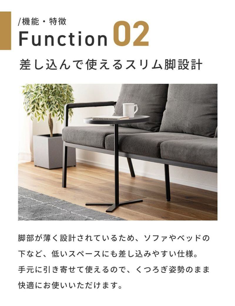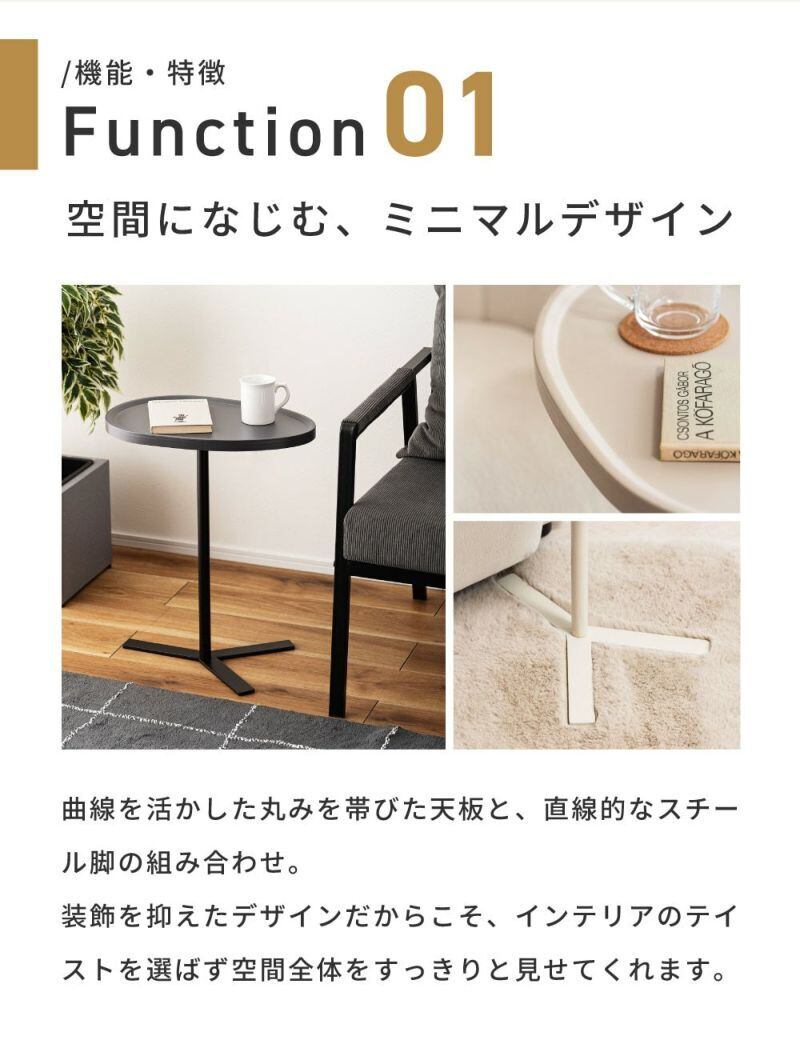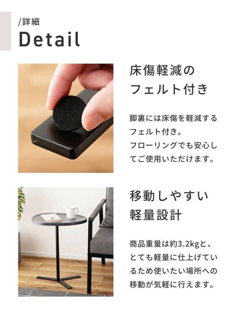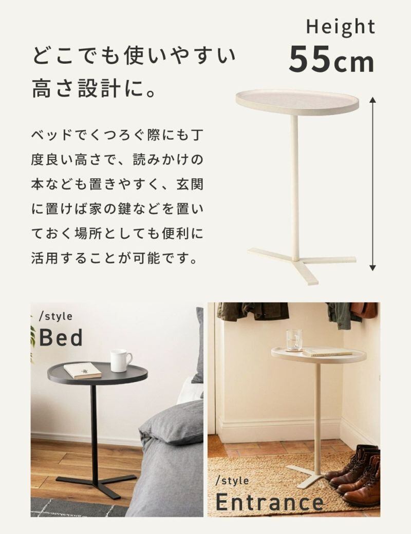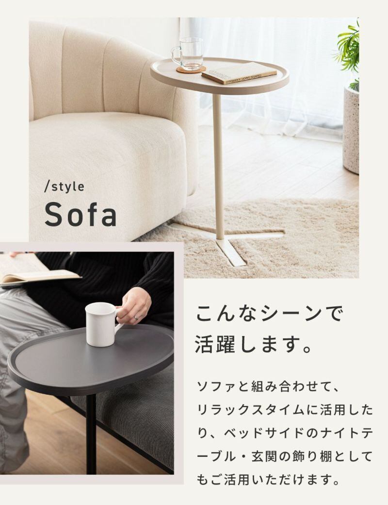 リビングはもちろん、ベッドサイドやワークスペースの補助テーブルとしても活躍します。