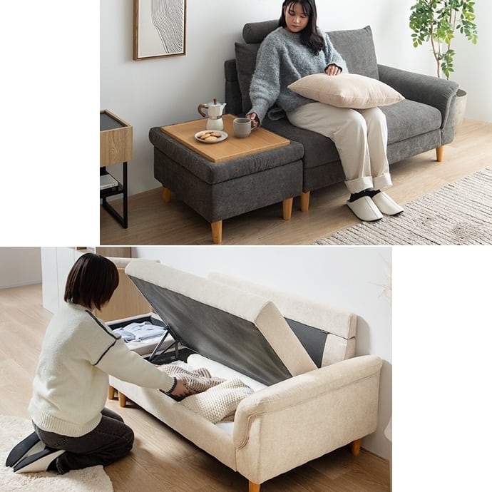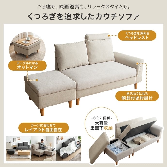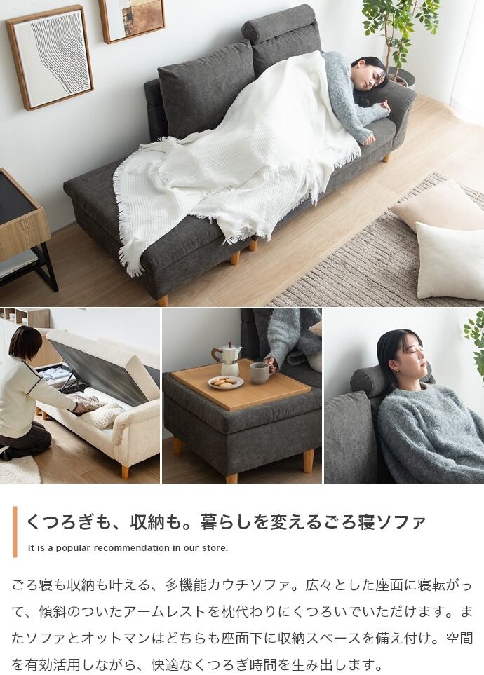 ごろ寝も収納も叶える、多機能カウチソファ。