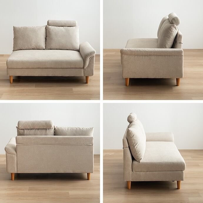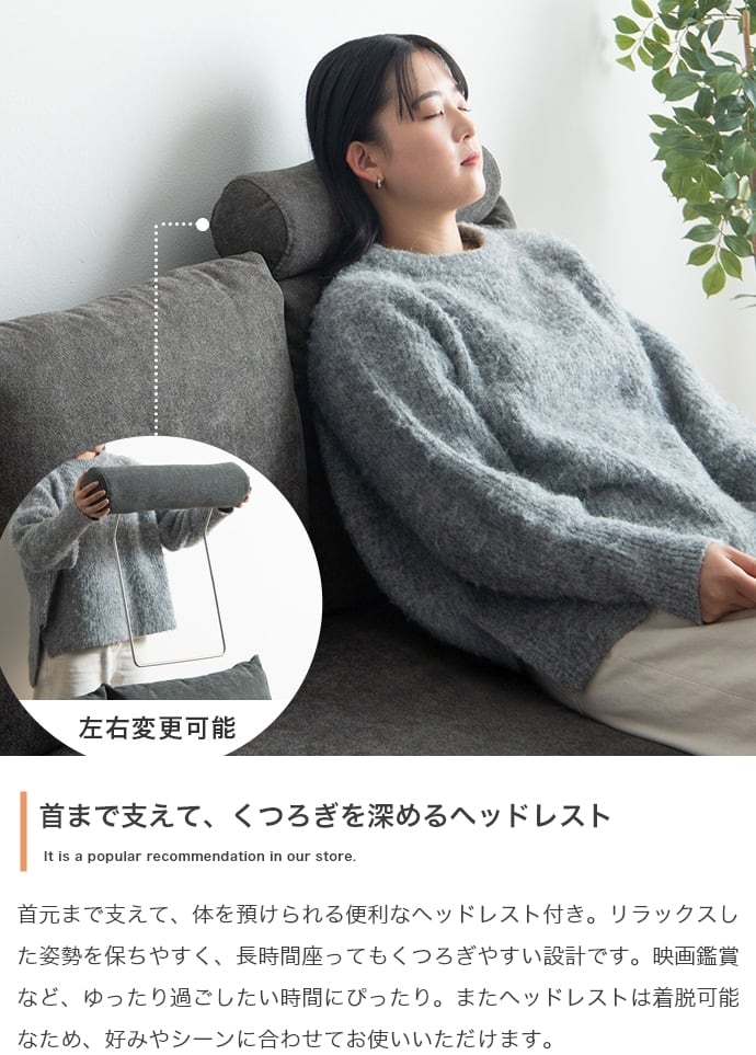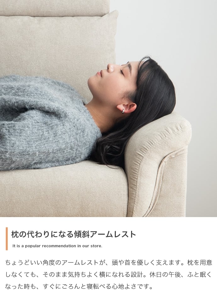 広々とした座面に寝転がって、傾斜のついたアームレストを枕代わりにくつろいでいただけます。