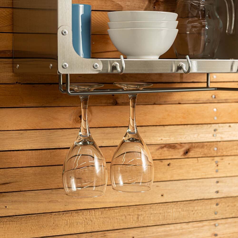下部にはフックとワイングラスを掛けられるフレームを装備。