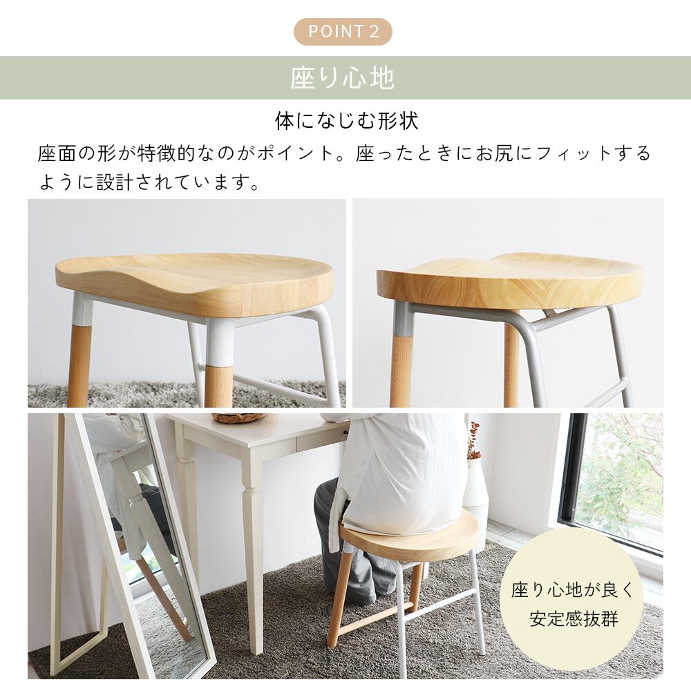 座面:天然木(ラバーウッド材)