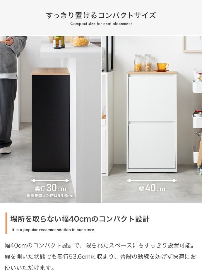 ゴミ箱を二台並べる必要がなく、省スペースでゴミの分別が可能です。