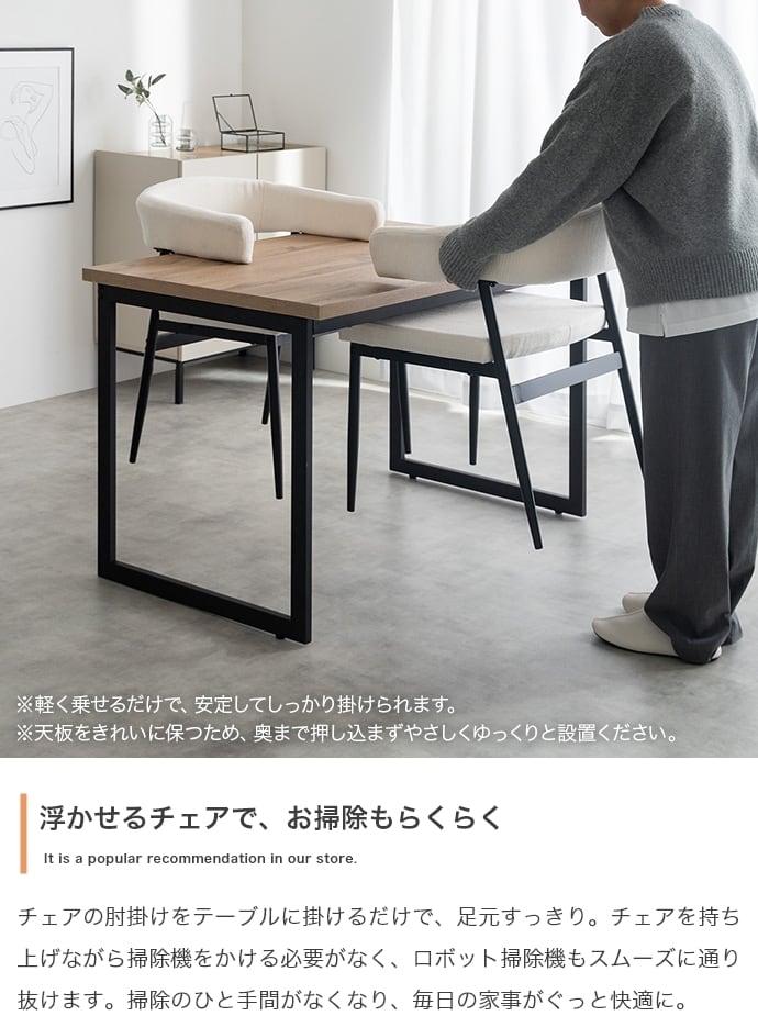 ハンギング可能な仕様で、床掃除やロボット掃除機の使用も快適です。お部屋に圧迫感を与えず、上質なインテリア空間を叶えます。
