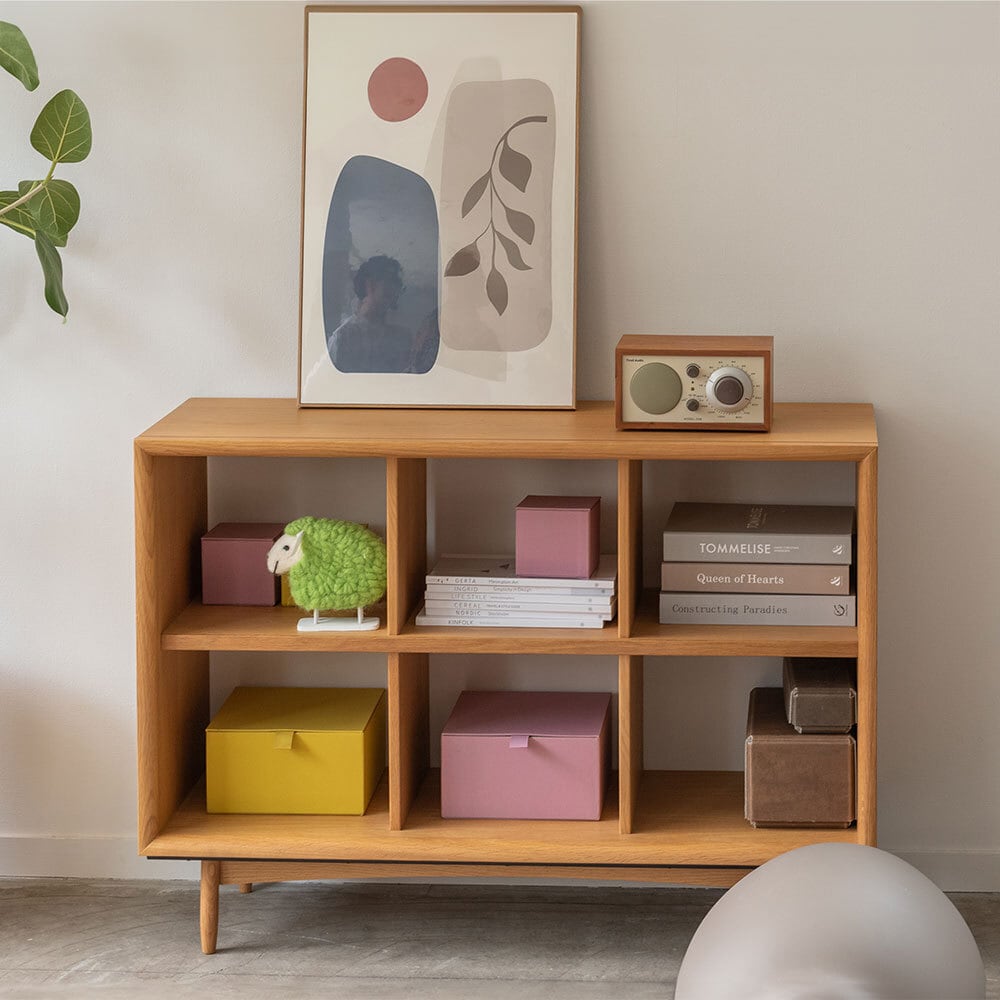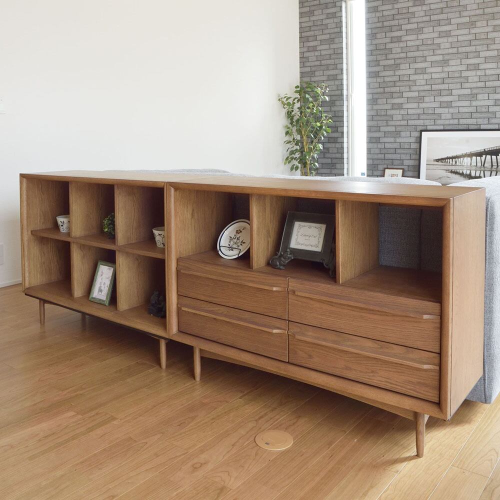 木目の美しさが特徴で、耐久性に優れたオーク材を使用したオープンシェルフ。