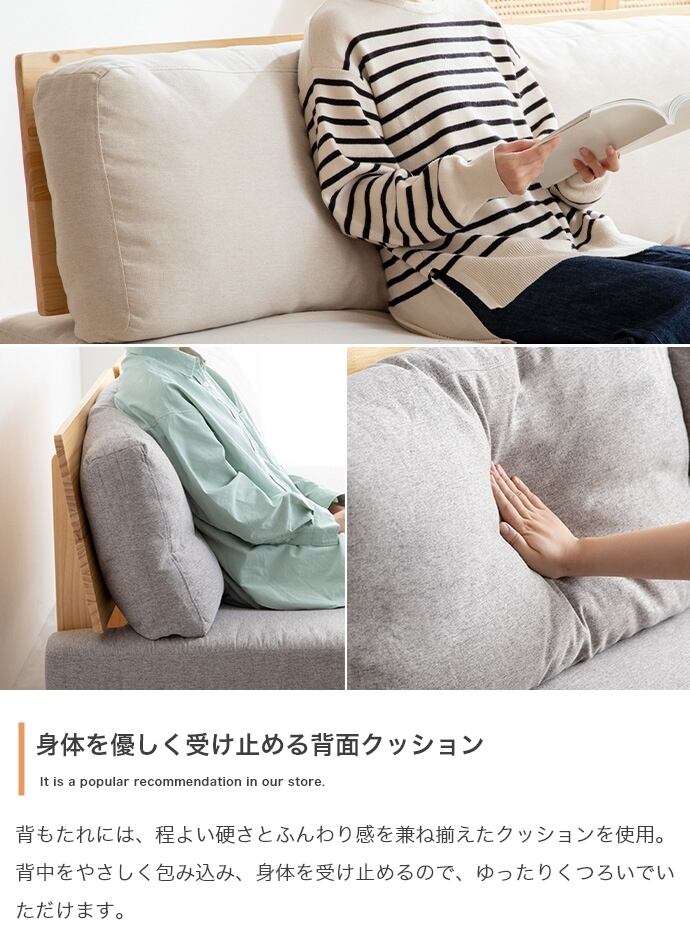 さらに、ポケットコイルを使用した広い座面は、程よい弾力があり長時間座っていても疲れにくく、ゆったり快適にお寛ぎいただけます。
