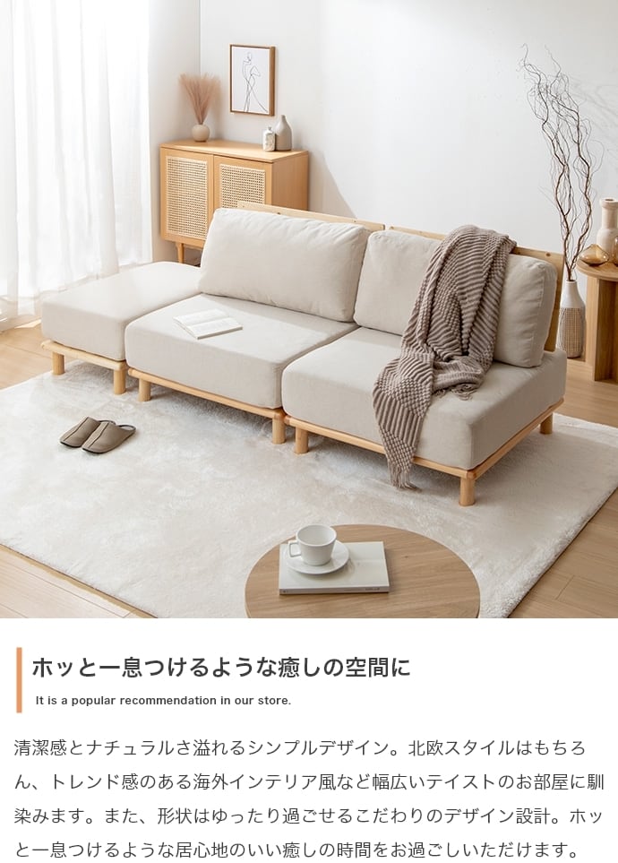 自分好みの形に自由にレイアウトできる3点セットソファ。