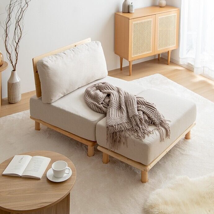 また、天然木をふんだんに使用したフレームと優しいファブリック生地がお部屋に清潔感と明るさをもたらし、居心地のいい空間に。