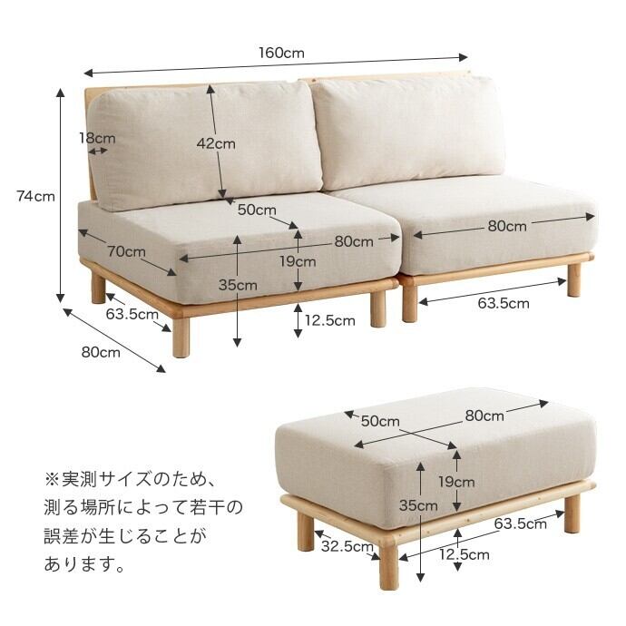 【ソファ】幅160cm(80cm+80cm)×奥行80cm×高さ74cm (座面高:35cm)