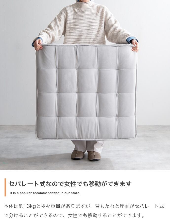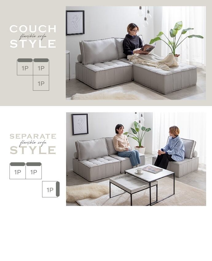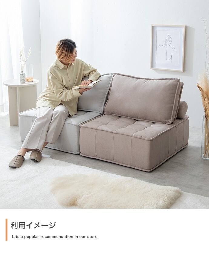 セパレート式でお部屋の間取りなどに合わせて気軽に組み替えていただけます。また、背もたれはもたれてもずれ落ちない仕様で、快適な使い心地です。