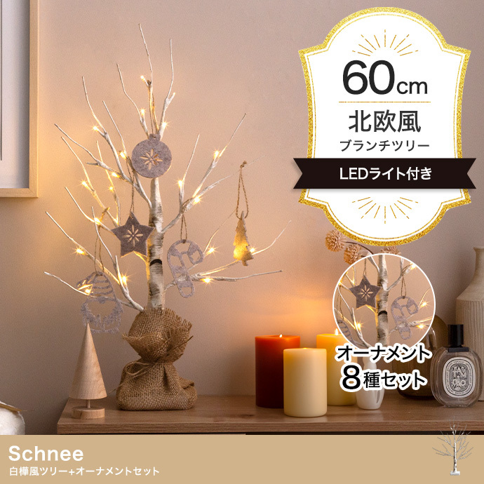 華奢で繊細な枝先に灯るLEDの優しい光とナチュラルな白樺の風合いが魅力的なブランチツリー。