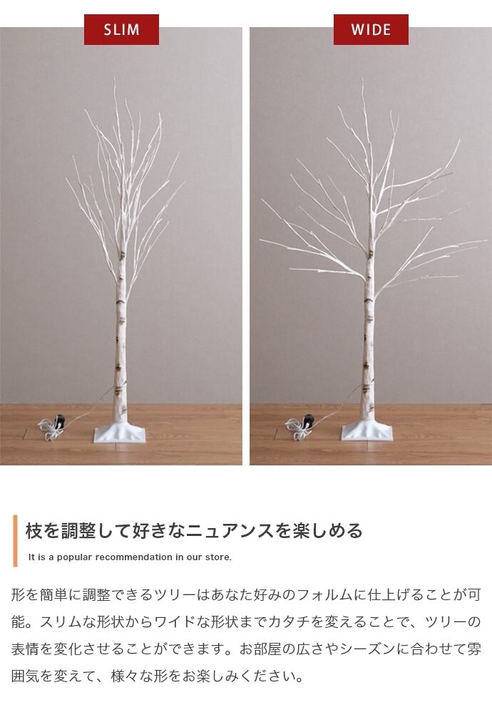 華奢で繊細な枝先に灯るLEDの優しい光とナチュラルな白樺の風合いが魅力的なブランチツリー。