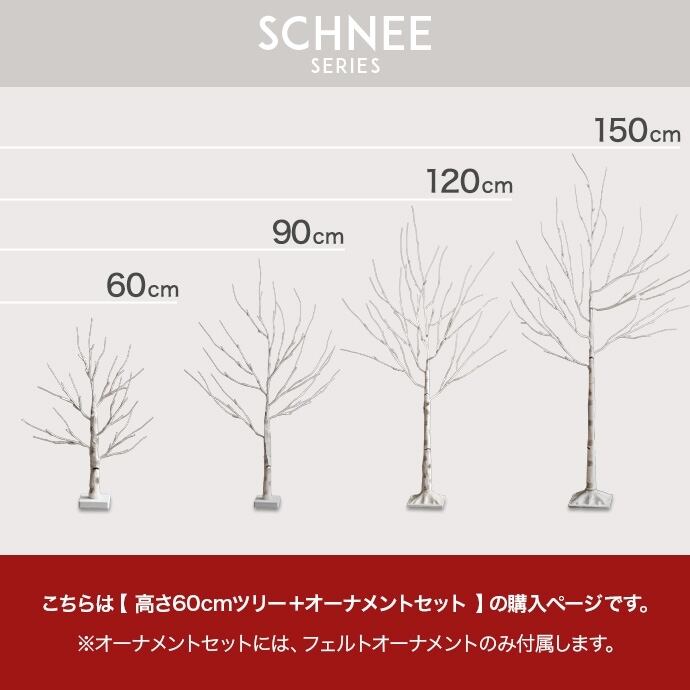 華奢で繊細な枝先に灯るLEDの優しい光とナチュラルな白樺の風合いが魅力的なブランチツリーと、かわいいフェルトのオーナメントセット。
