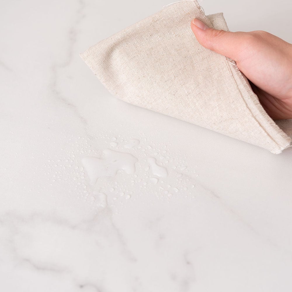 ストーン柄の天板は物を鮮やかに見せる効果があり、テーブルの上の料理や小物が引き立つデザイン!