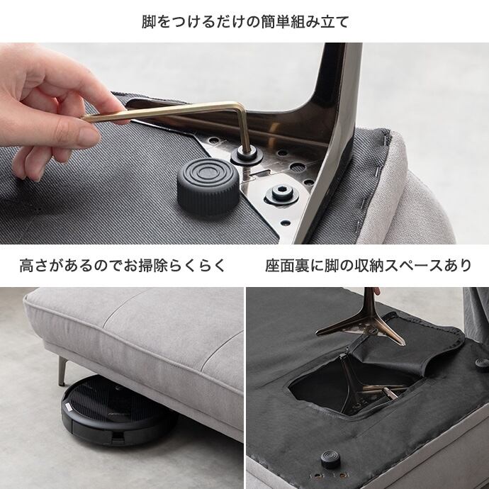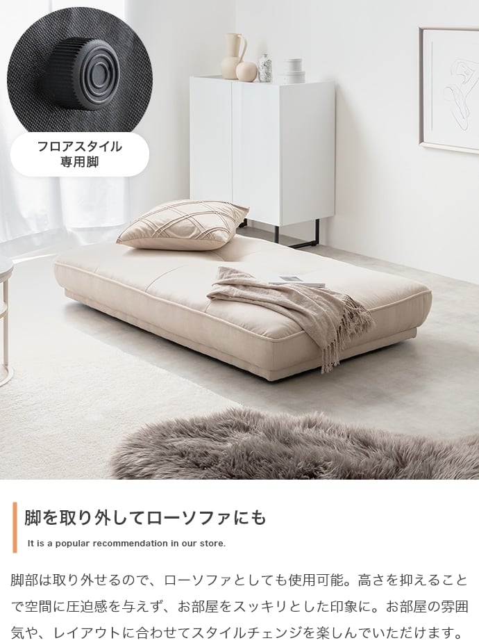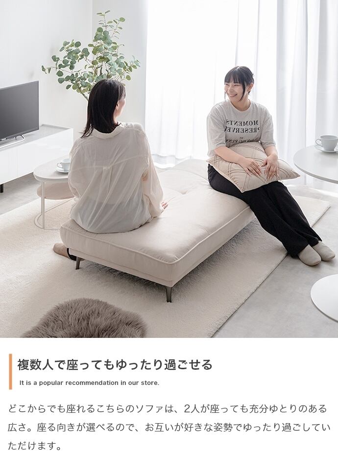 背もたれと肘掛けのない設計で、ソファの向きにとらわれることなく自由にくつろげます。