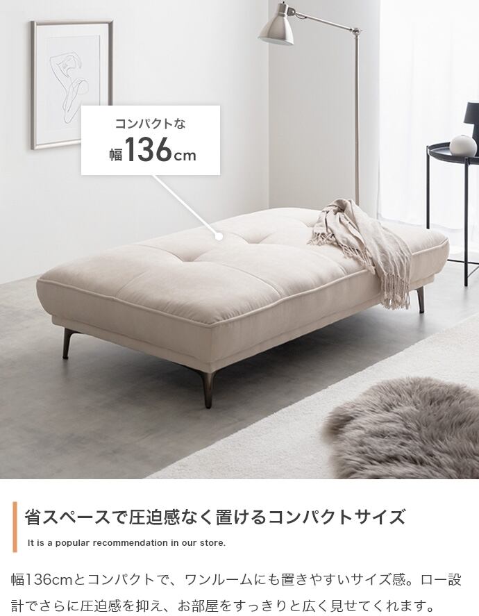 幅136cmとコンパクトながら座面は広々としているので、お昼寝も快適に。