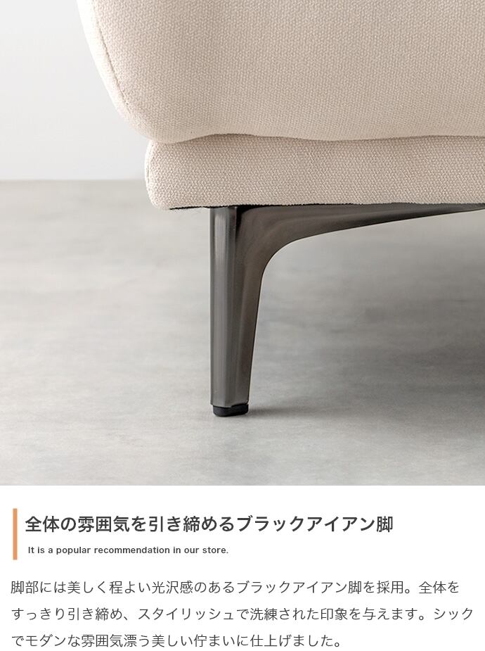 またしっかりとした厚みのある座面をシャープな脚が引き締め、高級感溢れるデザインに仕上げました。